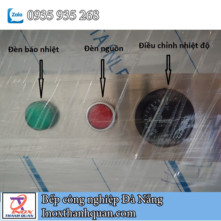 Thiết kế Tủ giữ nóng thức ăn - Tủ giữ nóng cơm canh chỉ có 2 đèn báo, 1 công tắc và 1 nút điều chỉnh nhiệt độ, sử dụng dễ dàng.